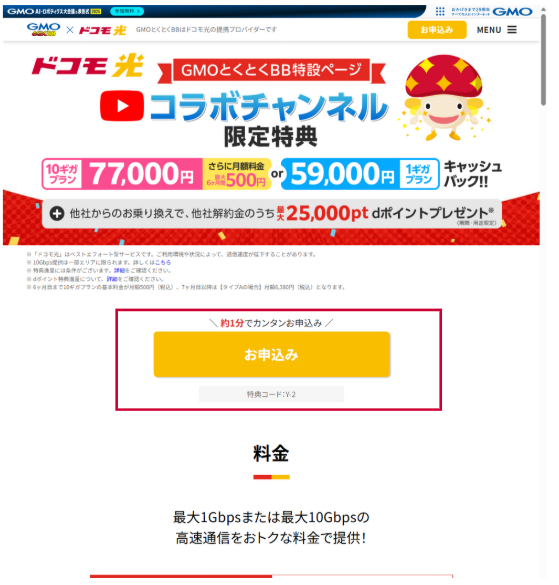 ドコモ光xGMOとくとくBB特設ページへアクセス