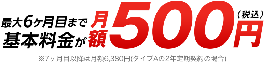 月額割引 | 最大6ヶ月間500円で利用可能 | なし |