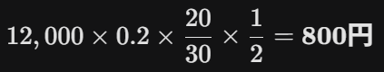 - 係数:1/2(睡眠時間を除いた生活時間のうち、労働時間が半分と仮定)