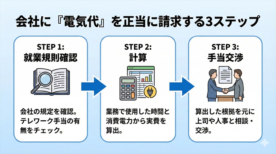 現実的な交渉術としては、**「計算が煩雑なので、通信・光熱費補助として一律月額3,000円の手当を新設してほしい」**と、労働組合やチーム単位で提案するのが最もスマートです。